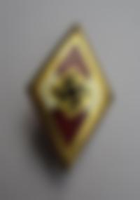 With permission from Hitler on 23 June 1934, the Golden Hitler Youth Badge (Das Goldene Hitler-Jugend-Abzeichen) was established as an honour award to the National Youth Leader (Reichsjugendführer) Baldur von Schirach in recognition of leadership and long service or other special achievements in the Hitler Youth (Hitler Jugend). The form was a golden framed rhomboid having in the centre a golden square field with a black swastika in a red and white field. The right to wear the Golden Hitler Youth Badge was allowed after the recipient left the Nazi Party and no longer wore the uniform. The Leader of the National Hitler Youth could grant the right for the recipient to wear the badge indefinitely.